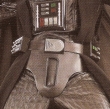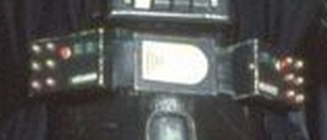 Lightsaber hook: Aluminum picture hanger secured on left side with two rivets.