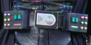 Belt Buckle: Black backplate - 4"x3", gloss black. Aluminum plate (maximum dimensions) - 2"x3 1/2"; 5 graduated slots with squared ends, from 1 1/4" to 3/8" in size. Aluminum circle - 1 1/2" circumference.