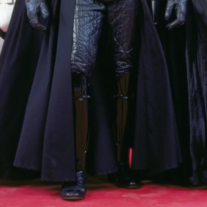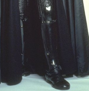 Note that the left shin is longer than the right, and that the detailing at the top, in the knee area, is also slightly different. The variation was due to Dave Prowse's shins being slightly different in length. The 'squares' have rounded, rather than sharp, edges. |