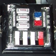 Coin slots: Lit with lights through red gel. Coin slots are black on the outward facing surfaces. One line of white text beneath each coinslot. Font is finer than on the ESB box.